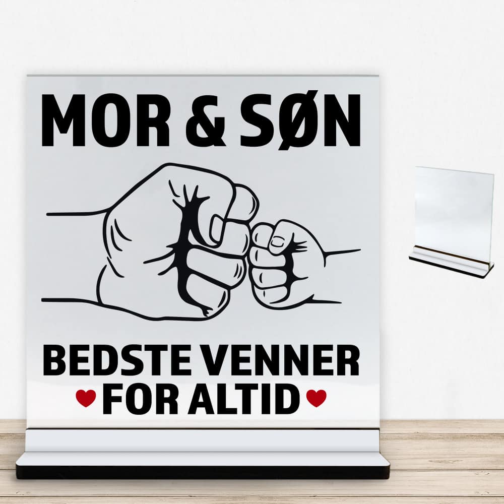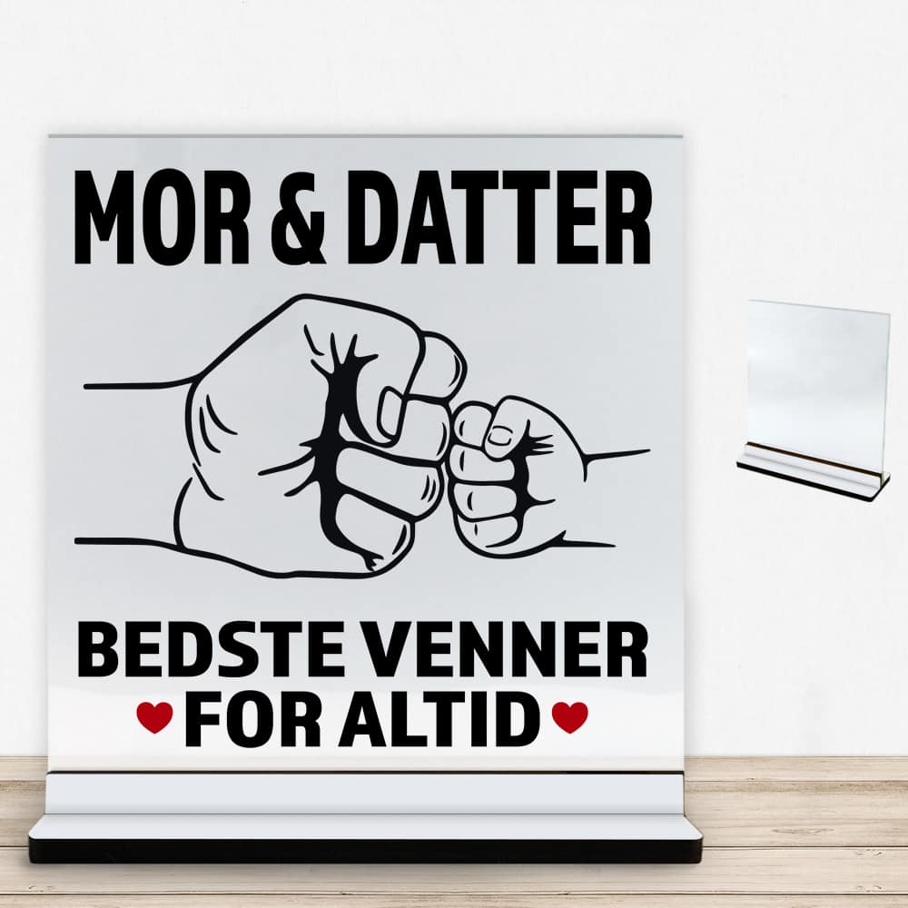 Enkelt og elegant glasskilt inkl. fod i træfiber med farvet overflade. Vores glasskilte er i sidste ende et håndlavet produkt, og er igennem hænder mange gange inden de ender som et færdigt produkt hos dig. Glasskiltet står “løst” i den medfølgende fod og det leveres derfor som to dele.