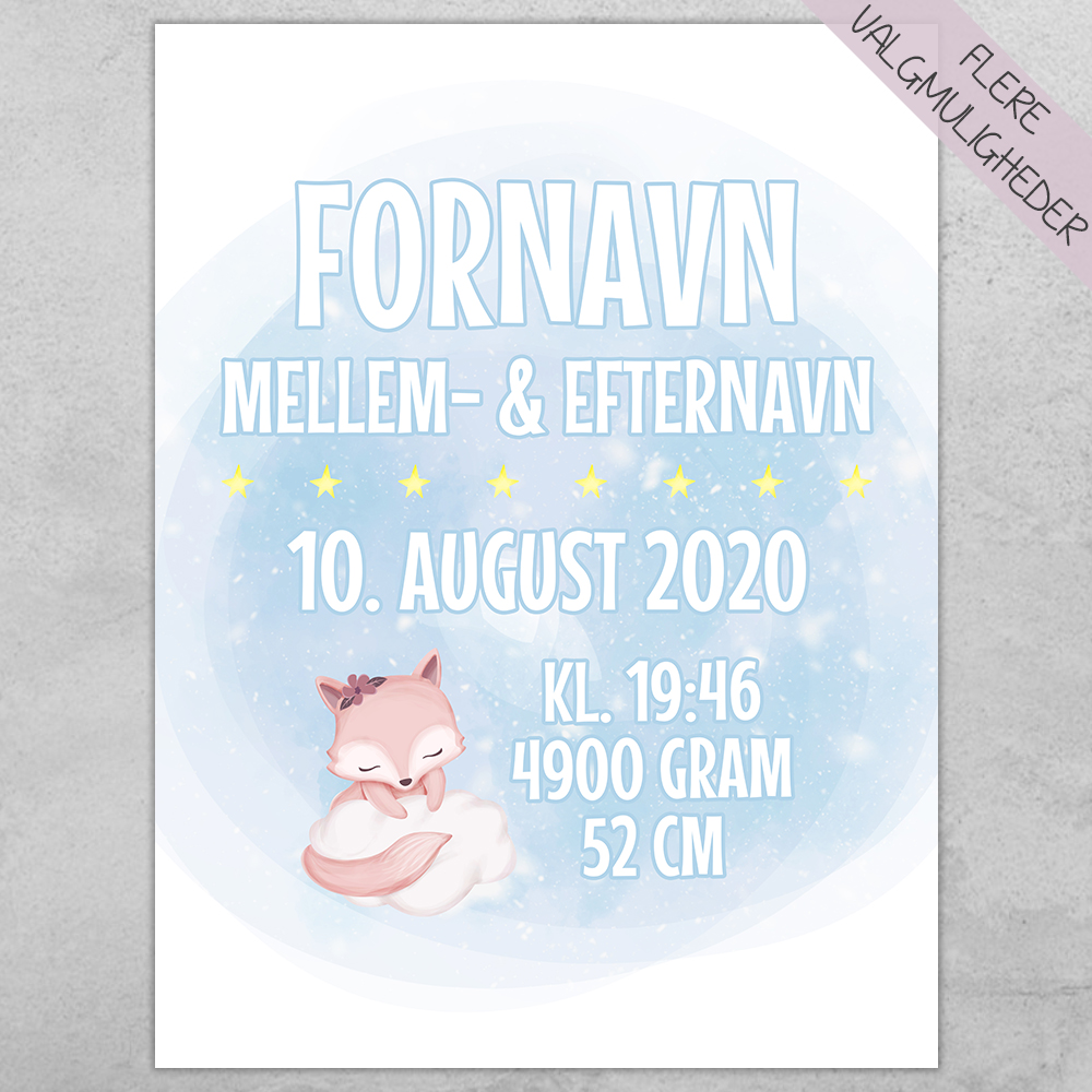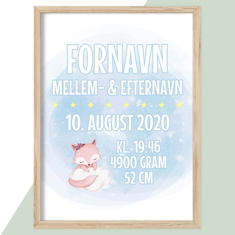 Cute Cloud serien – Fødselstavle Ræven Ruby | Plakat