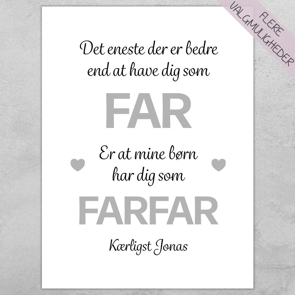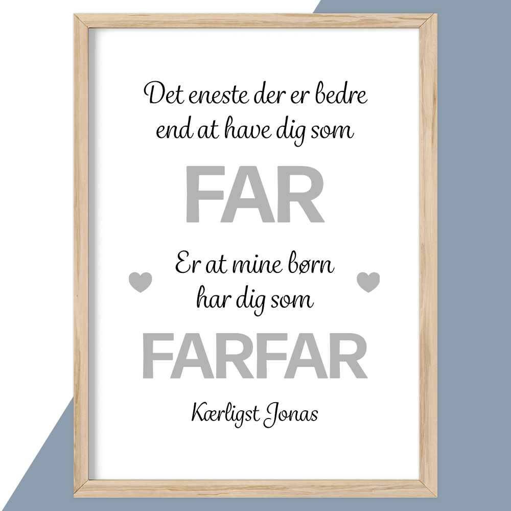 Plakat med tekst, den perfekte gave til eksempelvis din fars/farfars fødselsdag eller jul.