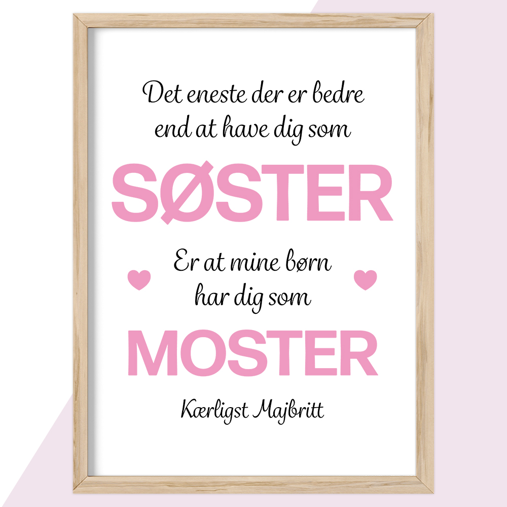 Plakat med tekst, den perfekte gave til eksempelvis din søsters/mosters fødselsdag eller jul.