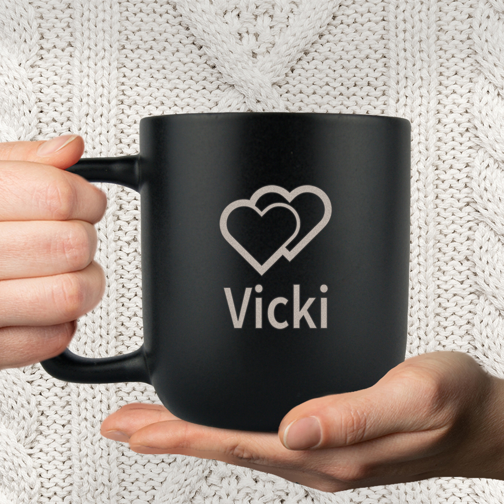 Størrelsen på graveringen afhænger af tekstens længde. Har du bestilt mere end et krus, tager vi udgangspunkt i det længste navn eller den længste linje og forsøger ud fra det at gøre graveringen så ens som muligt – Der graveres maksimalt ca. 3,8-4 cm i bredden henover krusets overflade. Det betyder også at vi ikke kan garantere at graveringen vil matche størrelse og placering på en tidligere bestilling, vi anbefaler derfor altid at kontakte os inden køb, hvis du ønsker en ny bestilling skal passe sammen med tidligere graverede krus.