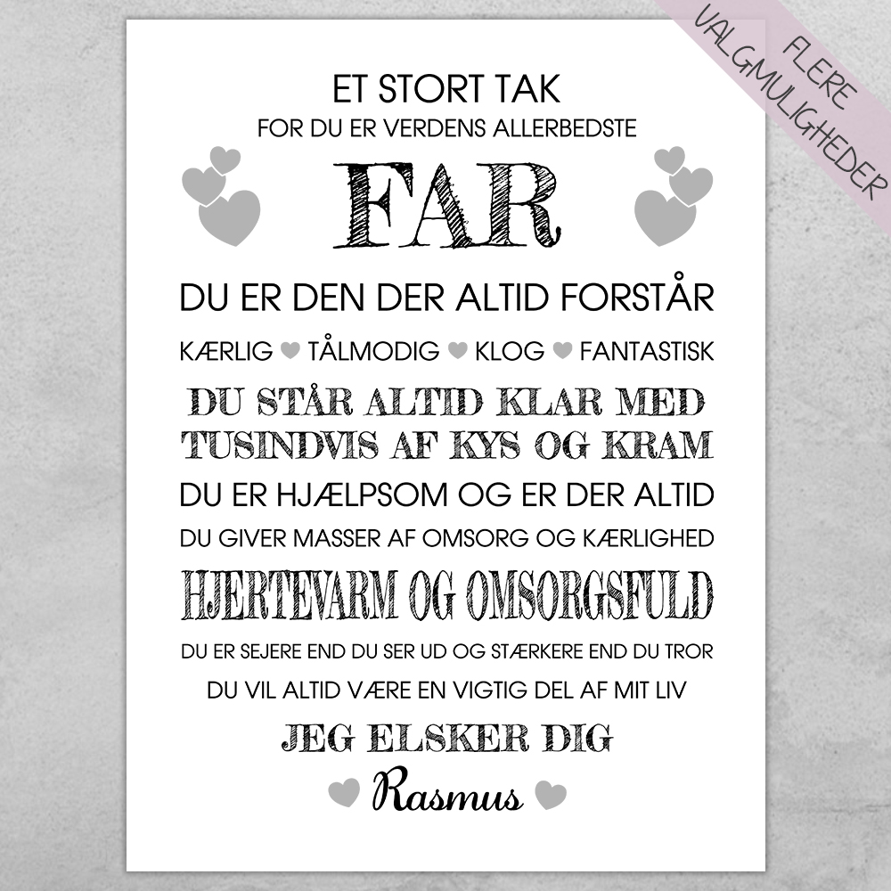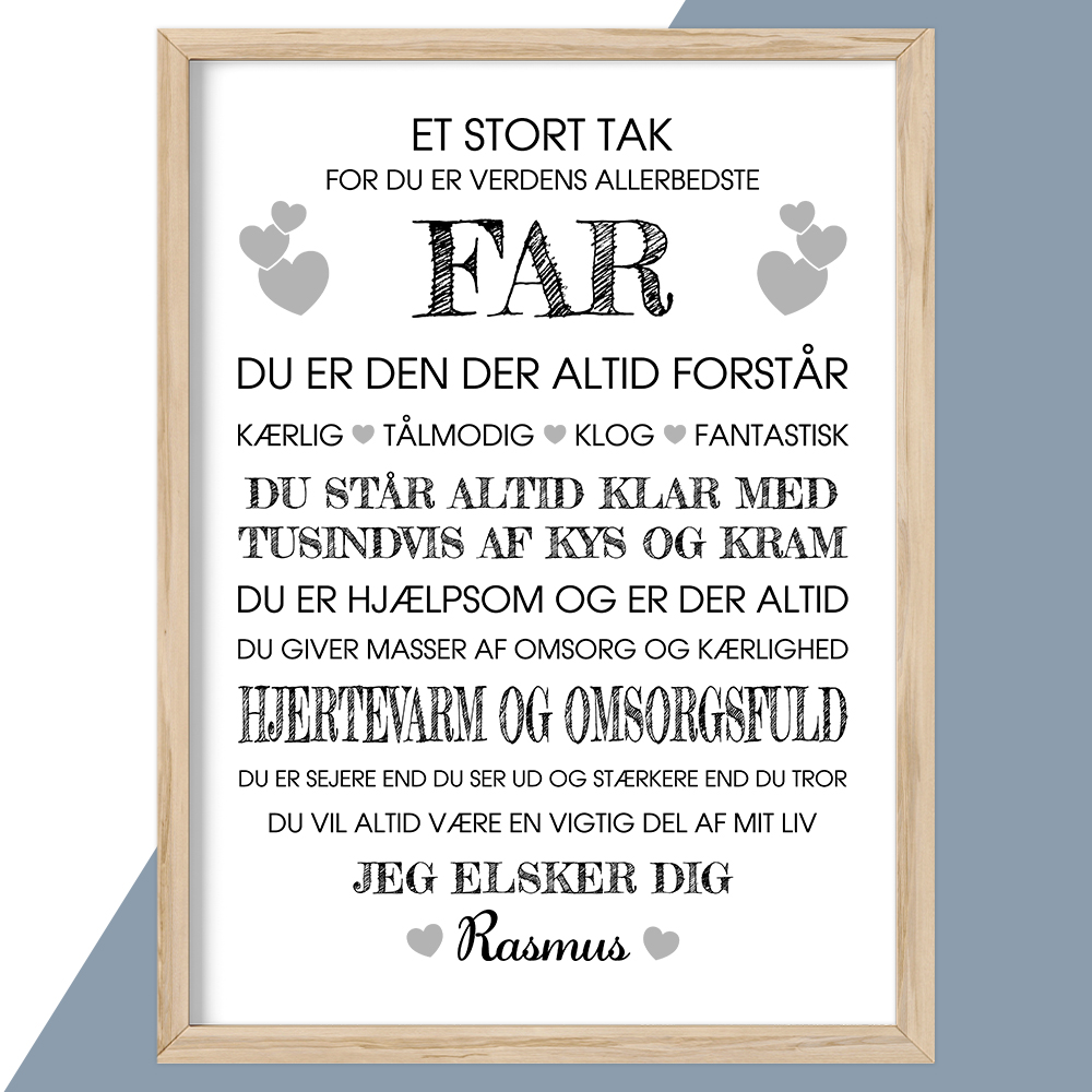 Plakat med tekst, den perfekte gave til eksempelvis din fars fødselsdag, fars dag eller jul.
