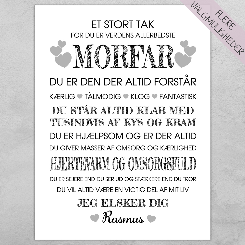 Plakat med tekst, den perfekte gave til eksempelvis din morfars fødselsdag eller jul.