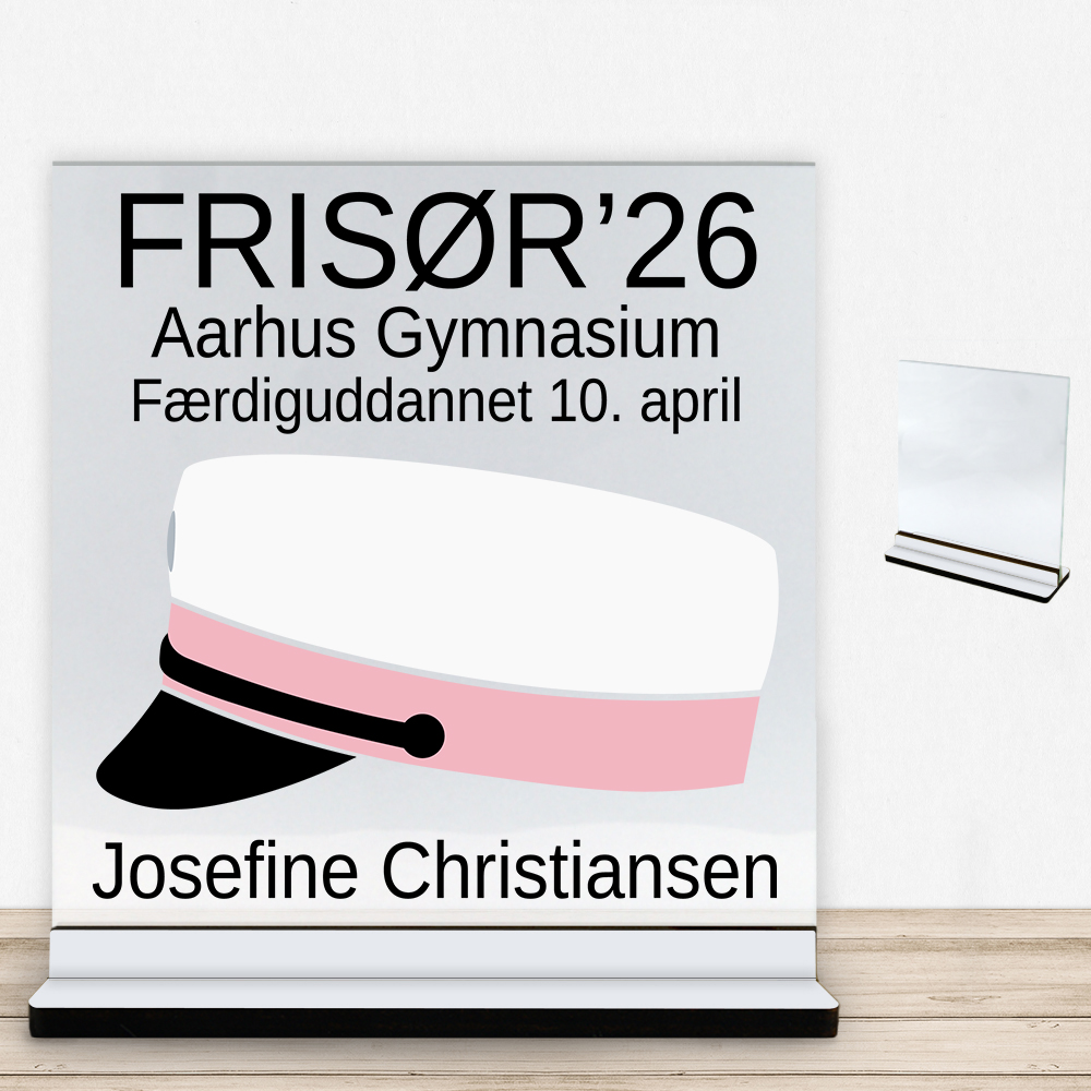 Enkelt og elegant glasskilt inkl. fod i træfiber med farvet overflade. Vores glasskilte er i sidste ende et håndlavet produkt, og er igennem hænder mange gange inden de ender som et færdigt produkt hos dig. Glasskiltet står “løst” i den medfølgende fod og det leveres derfor som to dele.