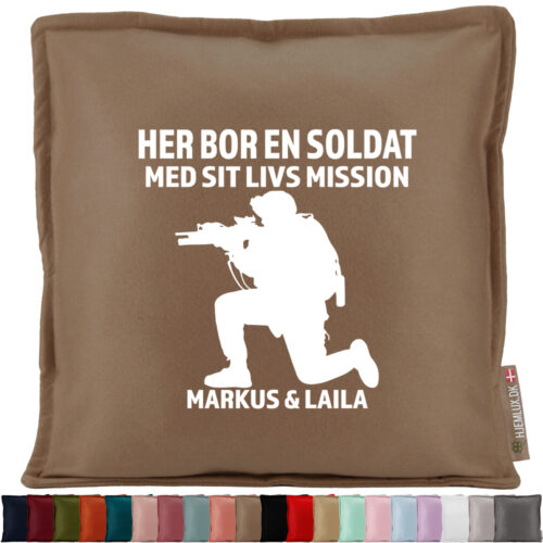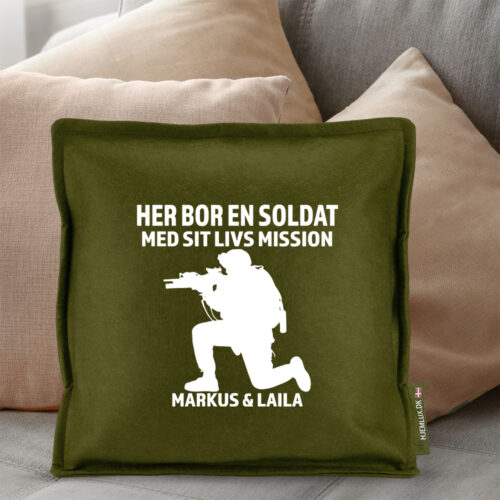 Her bor en soldat | Pyntepude i filt