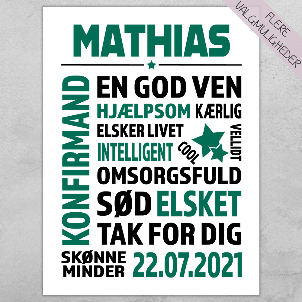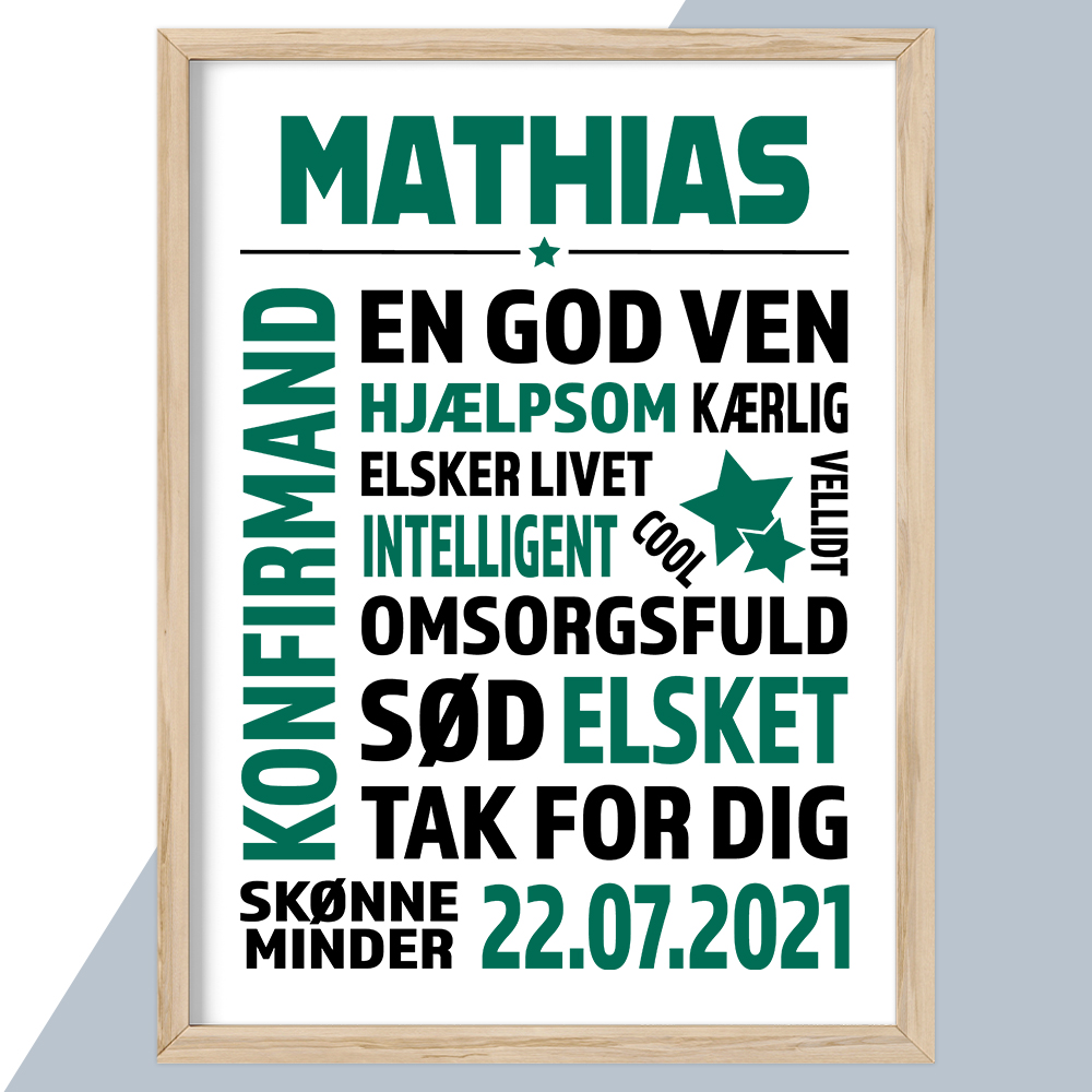 Oplagt konfirmationsgave, som uden tvivl vil bringe glæde når konfirmanden modtager den, men også mange år frem når vedkommende ser på plakaten og mindes tilbage til den helt specielle dag i godt og kærligt selskab.