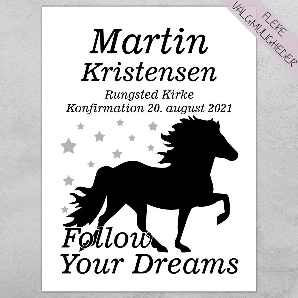 Konfirmation follow your dreams islandsk hest | Plakat