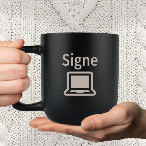 Gør det personligt Hvert krus kan graveres med valgfri tekst, navn eller initialer, hvilket gør det oplagt som gave til familie, venner, kolleger – eller som et personligt element i dit eget køkken. Graveringen fremstår som en smuk kontrast til overfladen og den holder hele krusets levetid.