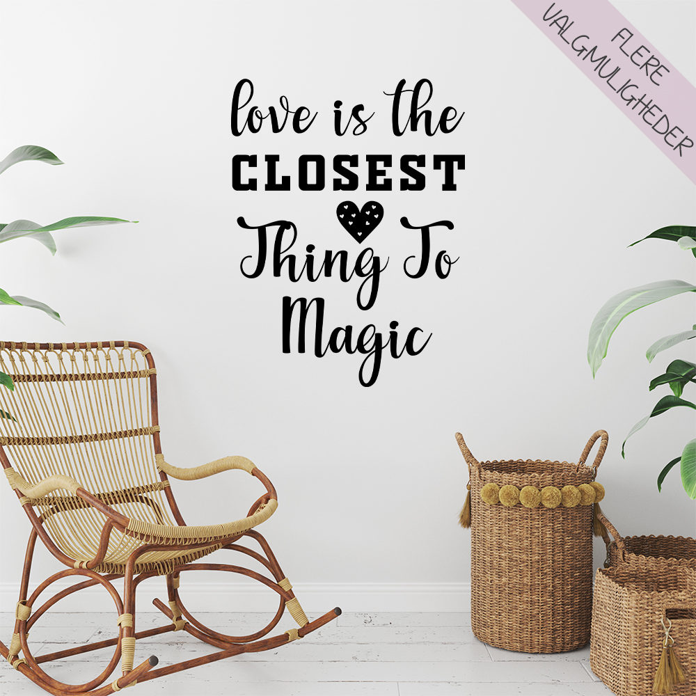 Wallsticker tekst “Love is the closest thing to magic”.