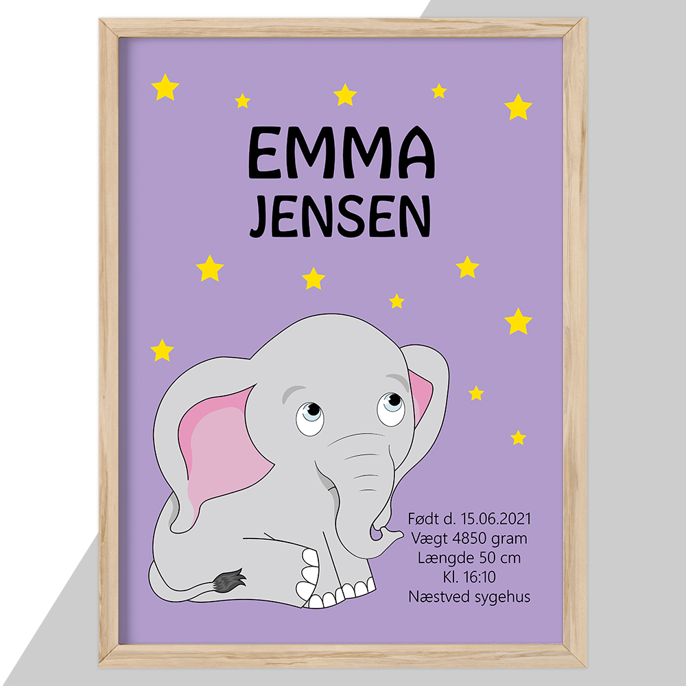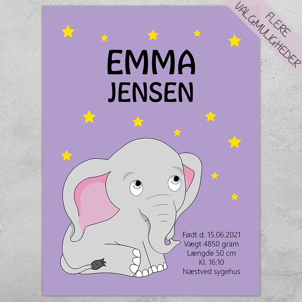 My Elephant design 1 – fødselstavle (lilla) | Plakat