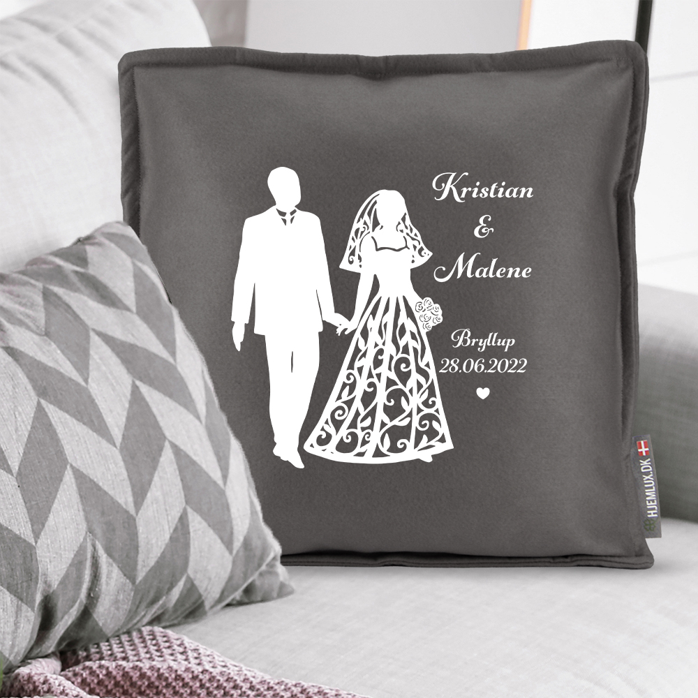 Neutral og elegant pyntepude i filt med trykt tekst/motiv inkl. udtagelig monteringspude.