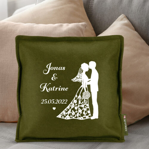 Neutral og elegant pyntepude i filt med trykt tekst/motiv inkl. udtagelig monteringspude.
