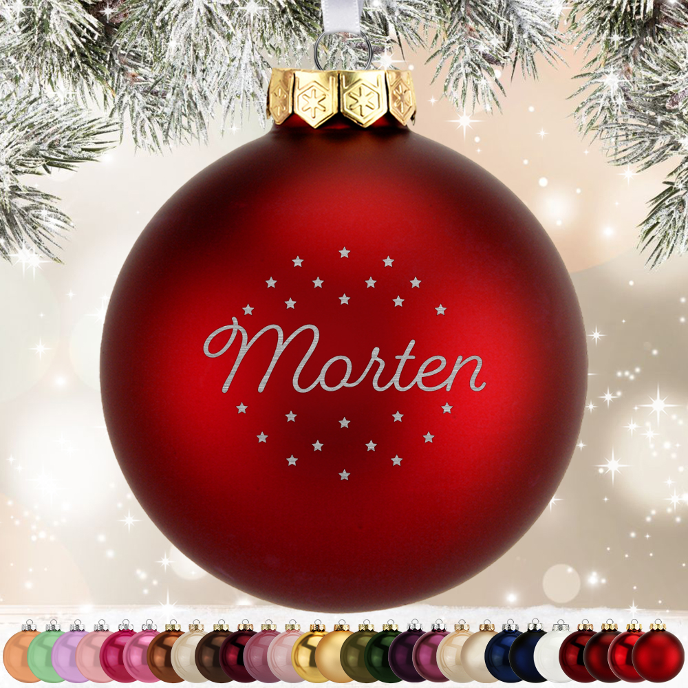 Glas julekugle med personlig gravering i Ø8 cm inkl. fin gaveæske og bånd