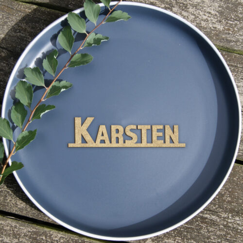 Personligt bordkort udskåret i træfiber. De er perfekte til festlige begivenheder som barnedåb, konfirmation, bryllup m.m.