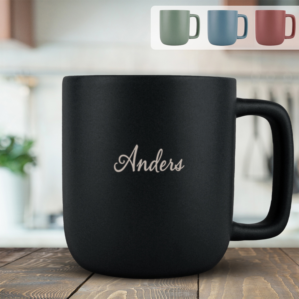 Gør det personligt Hvert krus kan graveres med valgfri tekst, navn eller initialer, hvilket gør det oplagt som gave til familie, venner, kolleger – eller som et personligt element i dit eget køkken. Graveringen fremstår som en smuk kontrast til overfladen og den holder hele krusets levetid.
