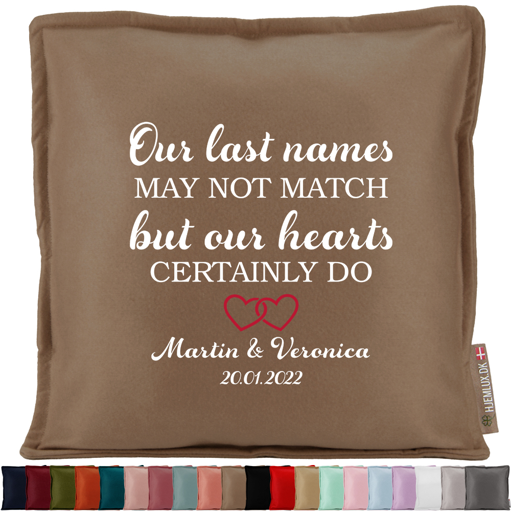 Udfyld navne, husk at skrive det præcis som du ønsker det stående på puden med små/store bogstaver.
