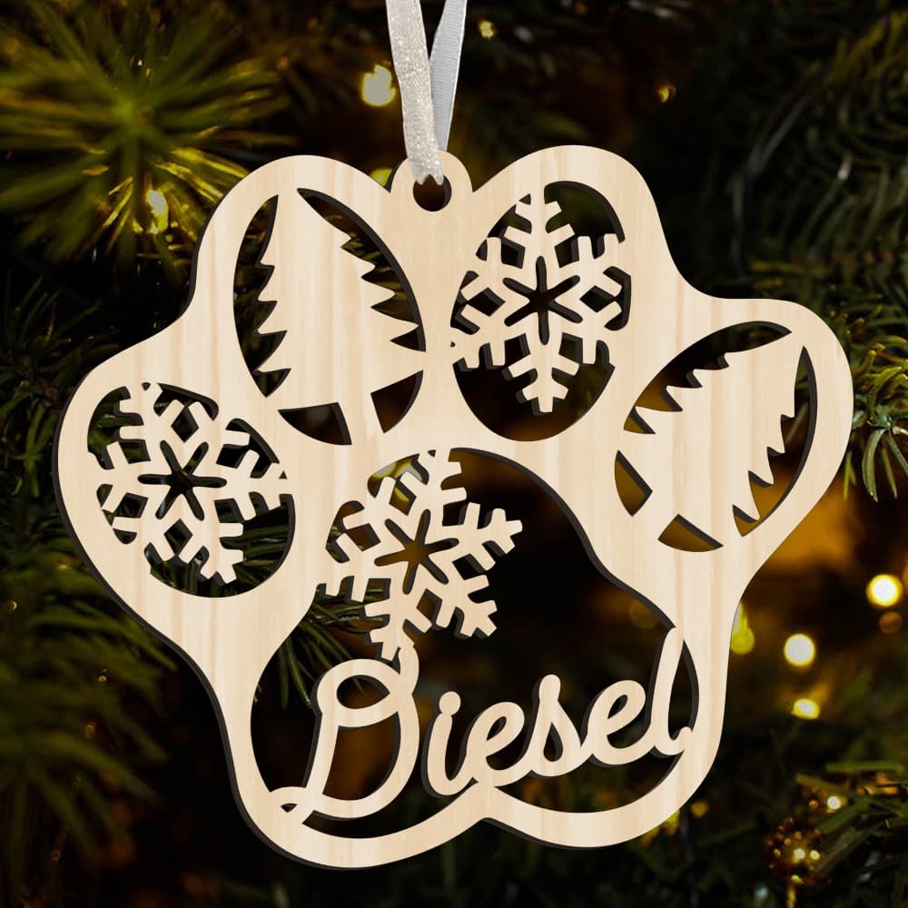 Personligt juleophæng udskåret i træfinér, perfekt til at skabe stemning i juletiden. Produktet kan have en let brændt lugt ved modtagelse, dette vil dog aftage efter kort tid.