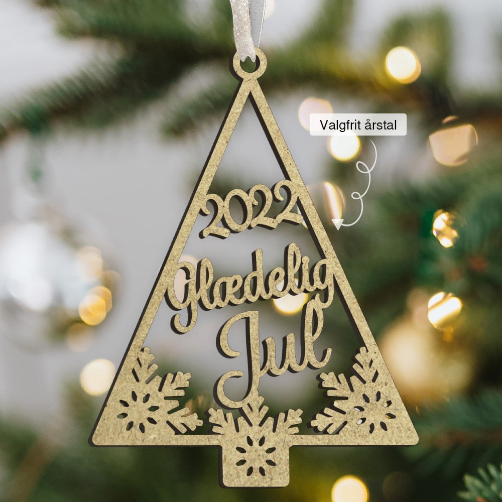 Personligt juleophæng udskåret i træfiber, perfekt til at skabe stemning i juletiden.