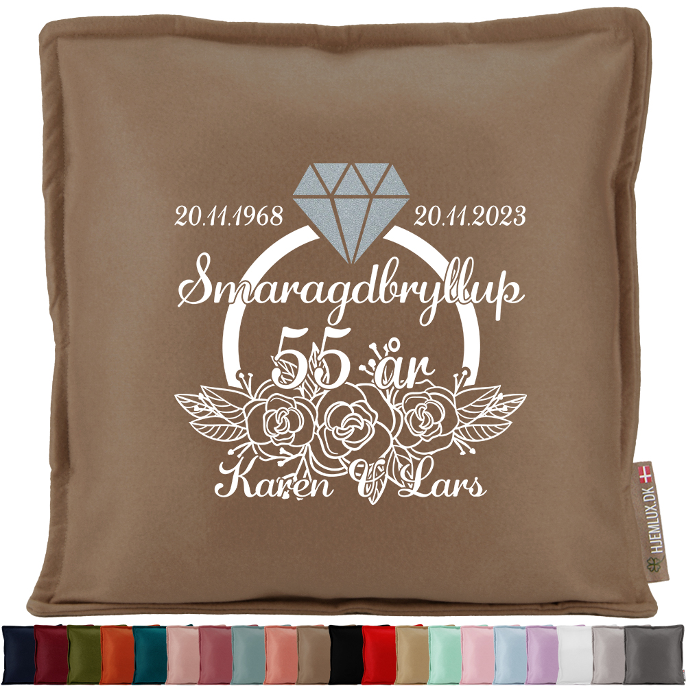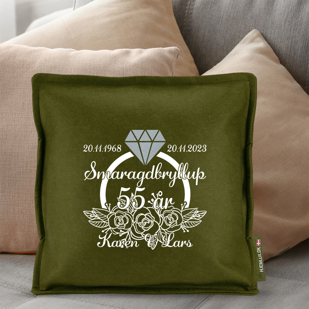 Smaragdbryllup blomster & ring 55 år | Pyntepude i filt