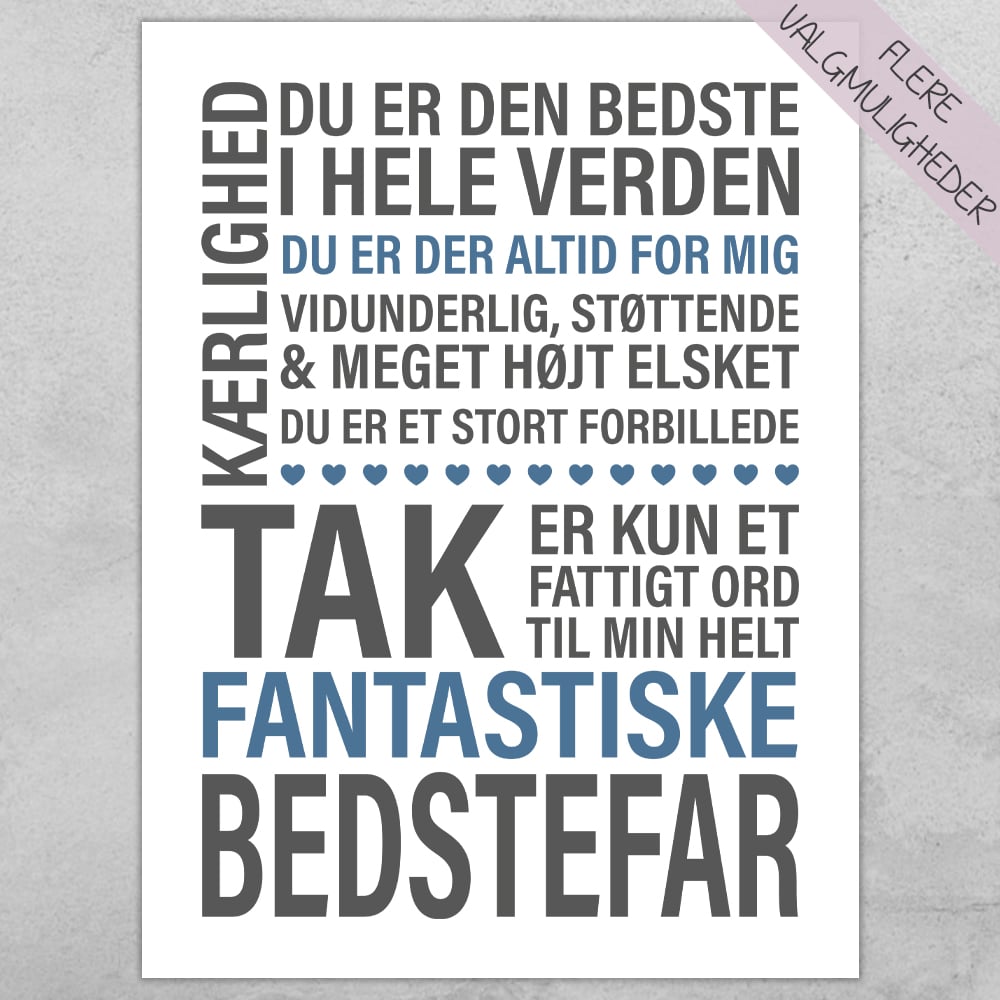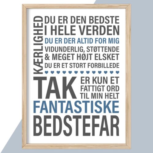 Plakat med tekst, den perfekte gave til eksempelvis din morfars fødselsdag eller jul.