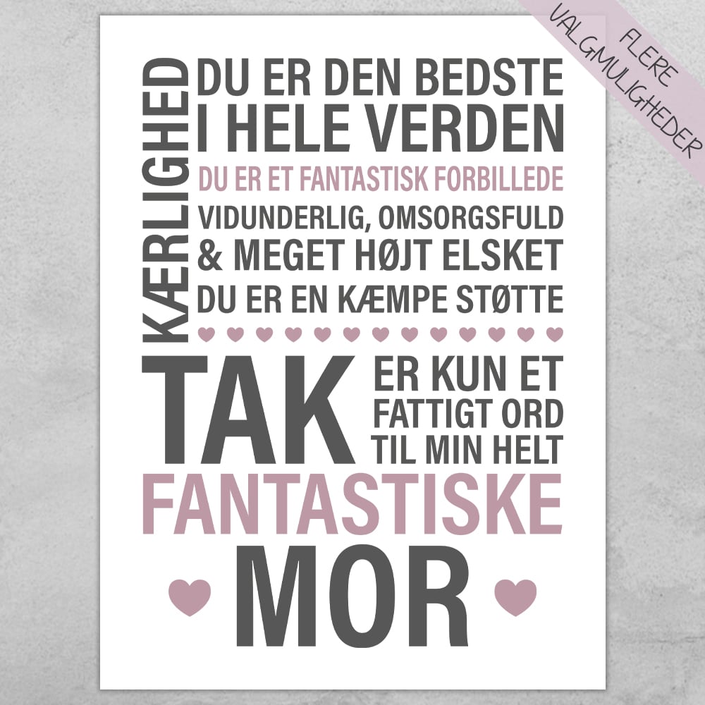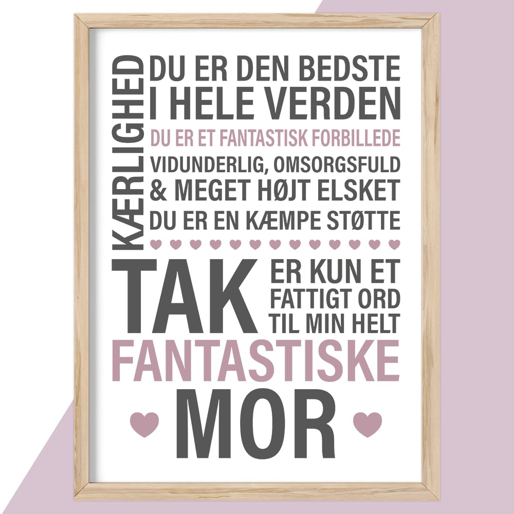 Plakat med tekst, den perfekte gave til eksempelvis din mors fødselsdag, jul eller mors dag.